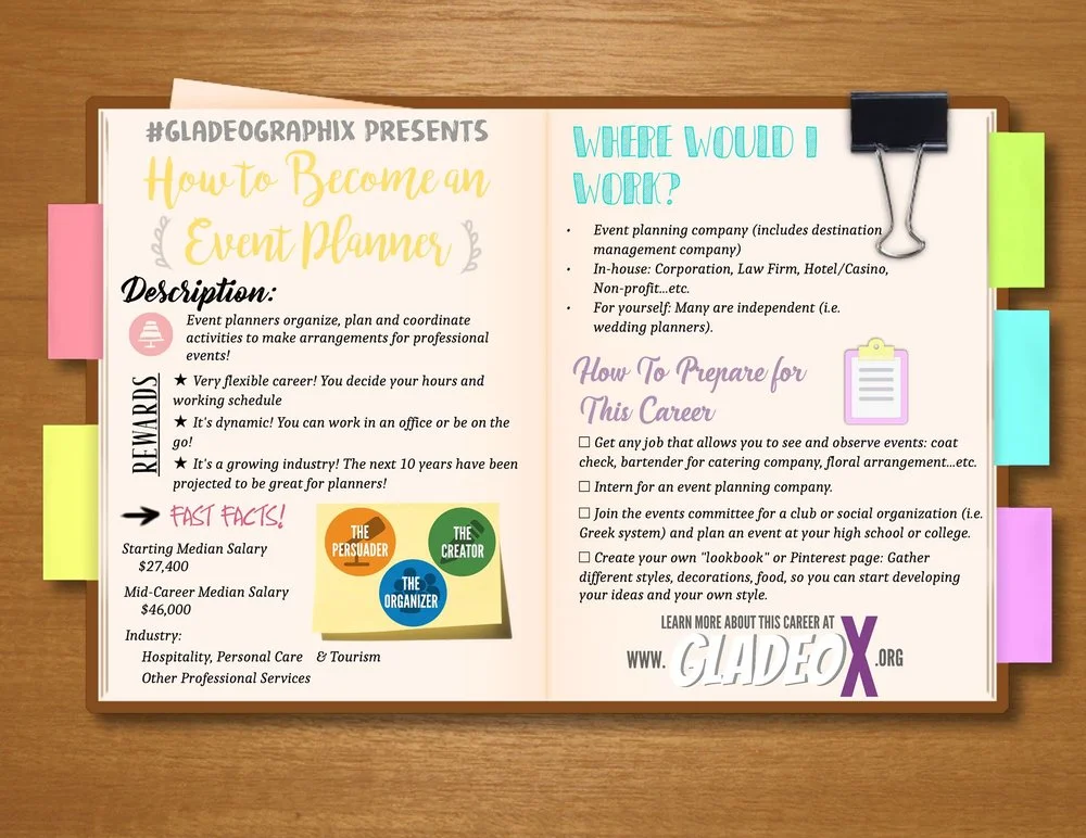 Gladeo is c-501 non-profit organization that provides online resources and multimedia materials about their future careers. This work was created as a Graphic Design Intern from August 2016 - August 2017. The 'Gladeographix" were created to highlight certain career profiles on Gladeox.org. They were to be circulated on social media, such as Instagram and Facebook, and used by instructors to educational purposes.